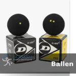 Squashballen zijn er in een aantal soorten. In de comepetitie wordt er gespeeld met een (Dunlop) competitiebal met 2 gele stippen. Deze stuiteren niet goed, tenzij je de ballen goed warm speelt. Daar heb je een redelijke techniek voor nodig.